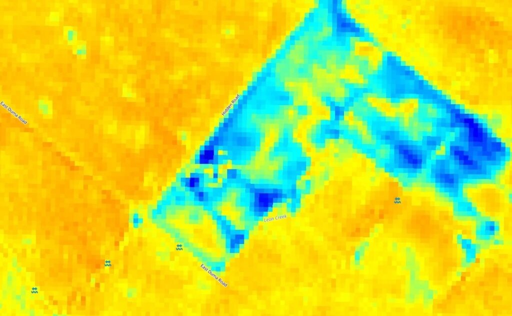Raster “Leak Probability” map (same extent/resolution as moisture index) with per-pixel probability [0–1] and Vectorized candidate leak polygons with attributes: probability, earliest detection date, persistence (days), peak anomaly magnitude.